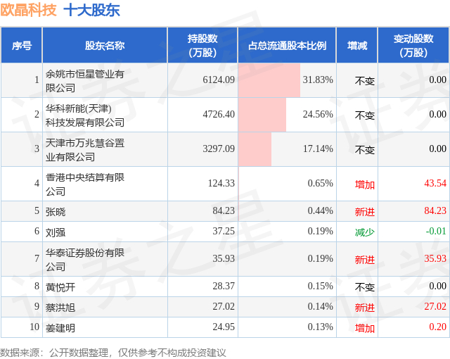 根据欧晶科技2025年中报公布的十大股东详情如下: