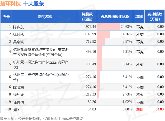 根据楚环科技2025年中报公布的十大股东详情如下: