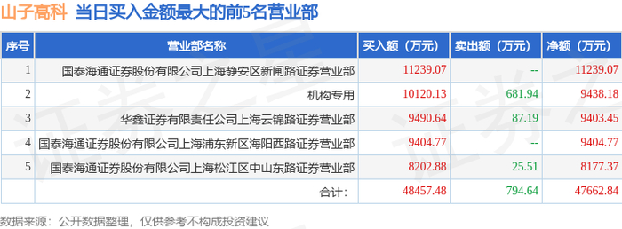 从龙虎榜公布的当日买卖数据来看,机构合计净买入9438.18万元。上海超短帮、章盟主、上海中山东路等知名游资榜上有名。(知名游资上海超短帮一般指国泰海通证券股份有限公司上海静安区新闸路证券营业部席位、知名游资章盟主一般指国泰海通证券股份有限公司上海浦东新区海阳西路证券营业部席位、知名游资上海中山东路一般指国泰海通证券股份有限公司上海松江区中山东路证券营业部席位,根据市场资料整理,仅供参考)