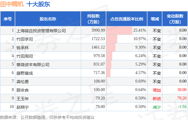 根据田中精机2025年三季报公布的十大股东详情如下: