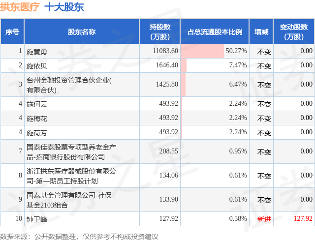 根据拱东医疗2025年三季报公布的十大股东详情如下:
