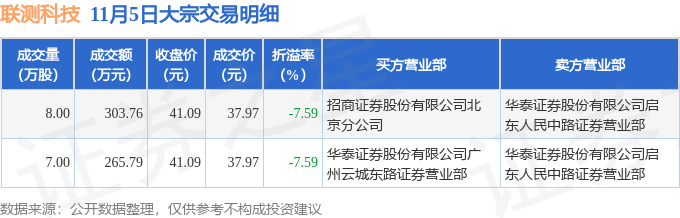 证券之星消息,11月5日联测科技发生大宗交易,交易数据如下: