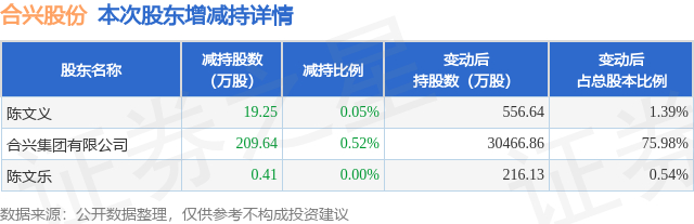 股东增减持详情见下表: