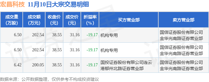 证券之星消息,11月10日宏昌科技发生大宗交易,交易数据如下: