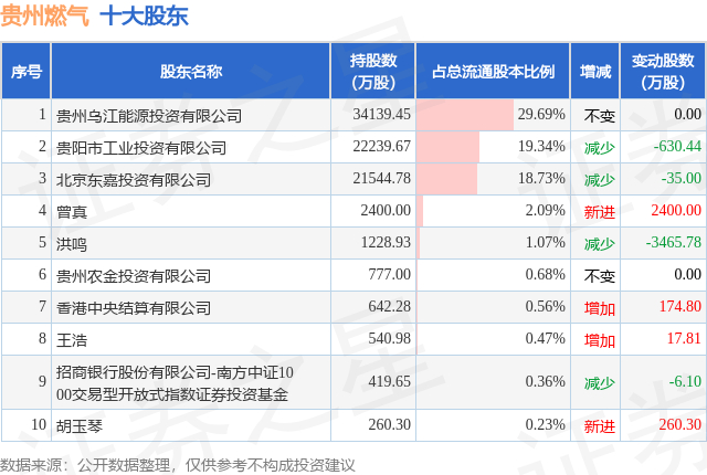 根据贵州燃气2025年三季报公布的十大股东详情如下: