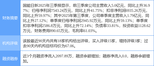 今日国能日新(301162)涨8.67%,收盘报62.4元。