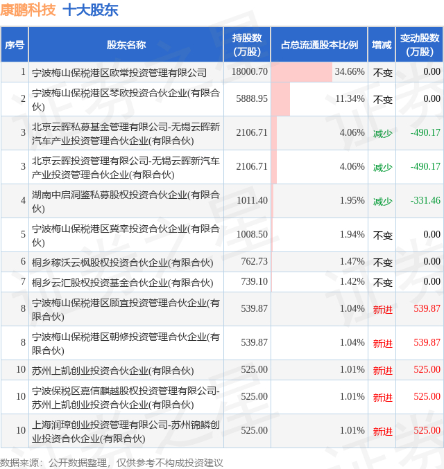 根据康鹏科技2025年三季报公布的十大股东详情如下: