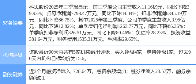 今日科思股份(300856)涨7.98%,收盘报15.29元。