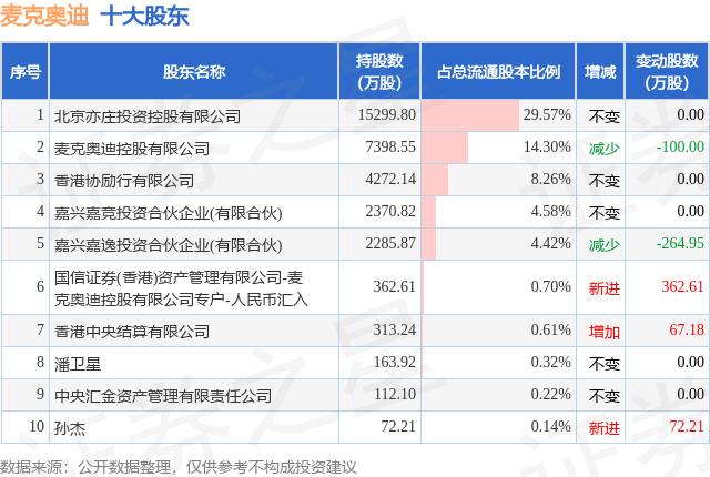 根据麦克奥迪2025年三季报公布的十大股东详情如下: