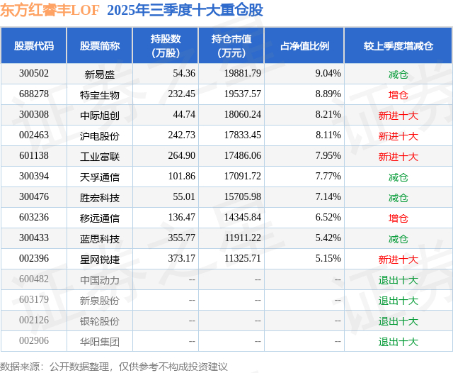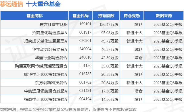 根据2025基金Q3季报公募基金重仓股数据,重仓该股的公募基金共56家,其中持有数量最多的公募基金为东方红资产管理的东方红睿丰LOF。东方红睿丰LOF目前规模为21.99亿元,最新净值1.894(11月20日),较上一交易日上涨0.69%,近一年上涨58.36%。该公募基金现任基金经理为刘辉。