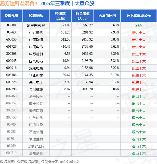 根据2025基金Q3季报公募基金重仓股数据,重仓该股的公募基金共2家,其中持有数量最多的公募基金为易方达基金的易方达科益混合A。易方达科益混合A目前规模为3.79亿元,最新净值1.1169(11月20日),较上一交易日下跌0.02%,近一年上涨31.62%。该公募基金现任基金经理为彭珂 黄蕴藉。彭珂在任的基金产品包括:易方达行业领先混合,管理时间为2025年4月12日至今,期间收益率为42.44%;易方达研究精选股票,管理时间为2025年6月21日至今,期间收益率为26.61%。