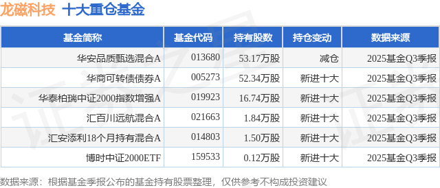 重仓龙磁科技的公募基金请见下表: