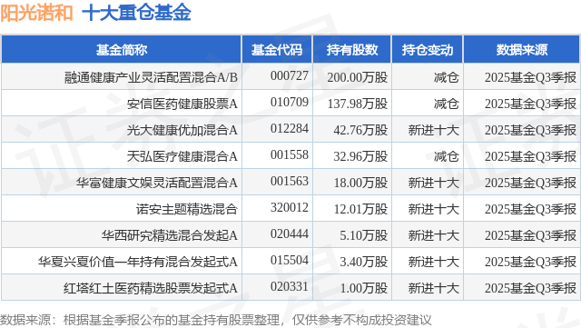 根据2025基金Q3季报公募基金重仓股数据,重仓该股的公募基金共9家,其中持有数量最多的公募基金为融通基金的融通健康产业灵活配置混合A/B。融通健康产业灵活配置混合A/B目前规模为18.16亿元,最新净值2.708(11月25日),较上一交易日上涨0.82%,近一年上涨5.78%。该公募基金现任基金经理为万民远。万民远在任的基金产品包括:融通鑫新成长混合A,管理时间为2021年10月8日至今,期间收益率为27.07%;融通价值成长混合A,管理时间为2022年7月18日至今,期间收益率为21.35%;融通医疗保健行业混合A/B,管理时间为2023年3月15日至今,期间收益率为-24.07%。