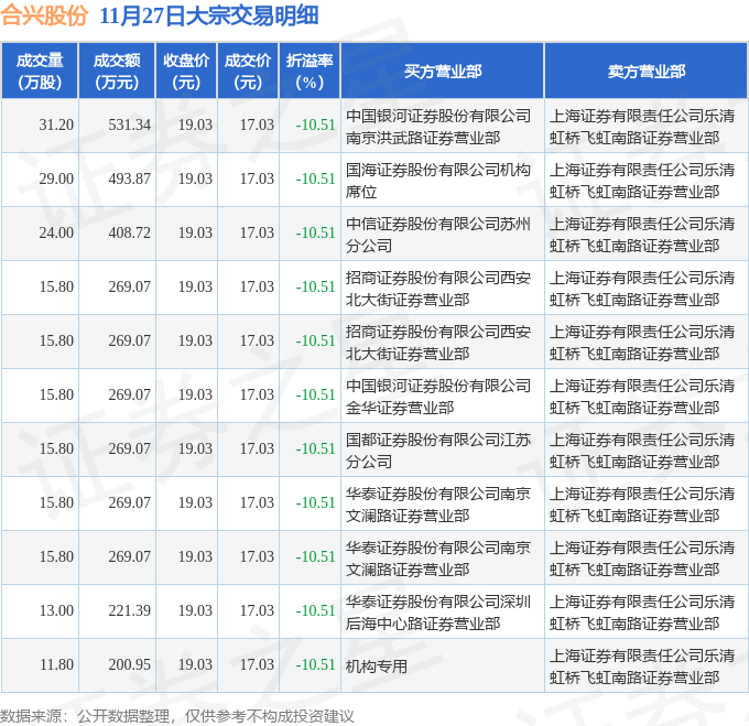 证券之星消息,11月27日合兴股份发生大宗交易,交易数据如下: