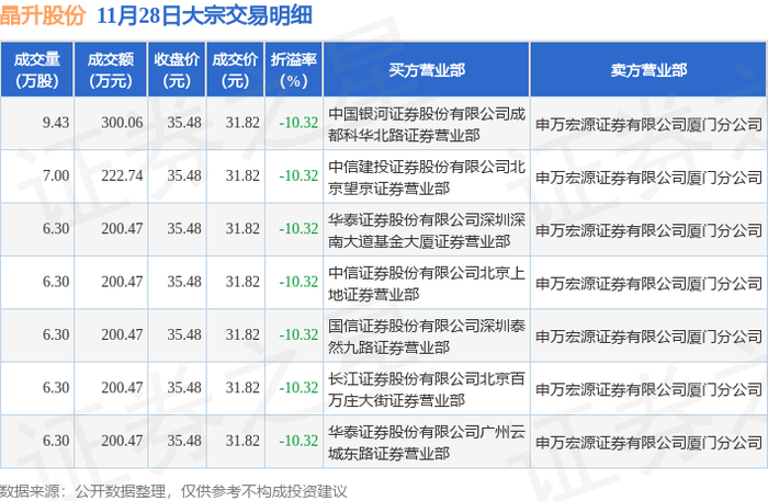 11月28日晶升股份现7笔折价10.32%的大宗交易 合计成交1525.15万元