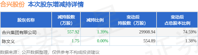 股东增减持详情见下表: