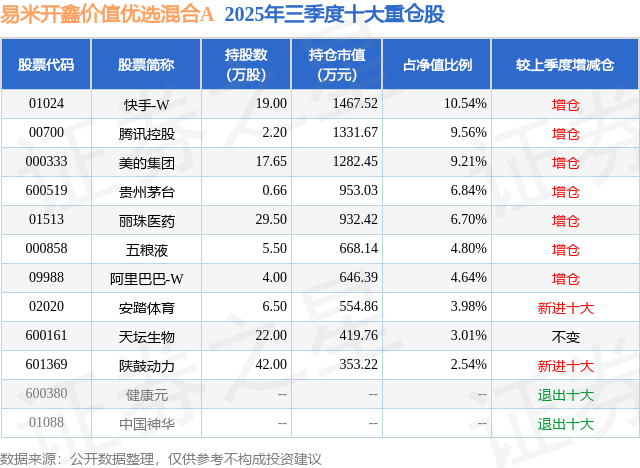 易米开鑫价值优选混合A的前十大重仓股如下: