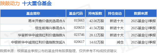重仓陕鼓动力的公募基金请见下表: