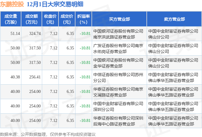 证券之星消息,12月1日东鹏控股发生大宗交易,交易数据如下: