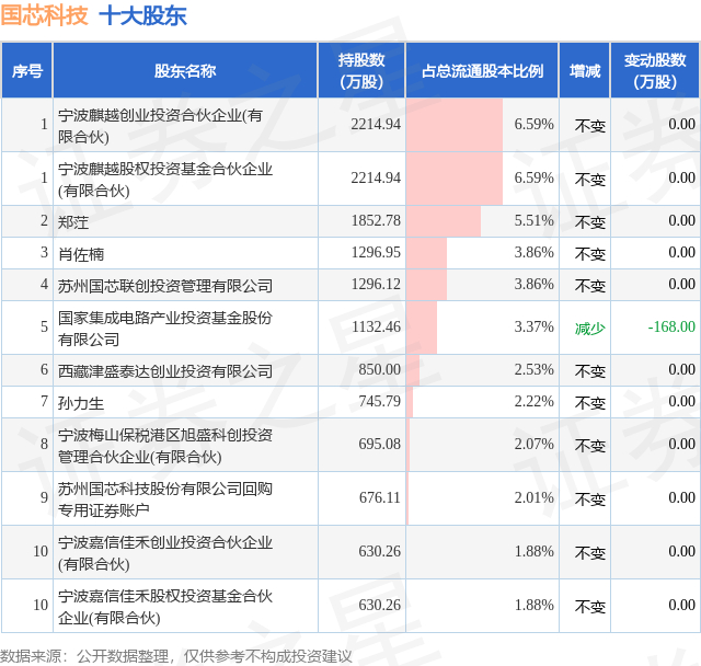 根据国芯科技2025年三季报公布的十大股东详情如下: