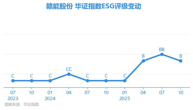 日前,华证指数公布了新一期(2025年10月31日)的ESG评级结果,赣能股份(000899.SZ)获得B评级(华证指数评级为C起至AAA九档,C为最低档,AAA为其最高一级评级/AA为其第二档),上一期(2025年7月31日)ESG评级为BB。本期ESG评级在58家电力公用事业行业A股上市公司中排名第29(上一期排名第26)。