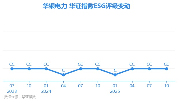 日前,华证指数公布了新一期(2025年10月31日)的ESG评级结果,华银电力(600744.SH)获得CC评级(华证指数评级为C起至AAA九档,C为最低档,AAA为其最高一级评级/AA为其第二档),上一期(2025年7月31日)ESG评级为CC。本期ESG评级在58家电力公用事业行业A股上市公司中排名第46(上一期排名第47)。