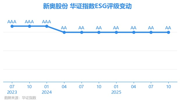 日前,华证指数公布了新一期(2025年10月31日)的ESG评级结果,新奥股份(600803.SH)获得AA评级(华证指数评级为C起至AAA九档,C为最低档,AAA为其最高一级评级/AA为其第二档),上一期(2025年7月31日)ESG评级为AA。本期ESG评级在22家燃气公用事业行业A股上市公司中排名第1(上一期排名第1)。