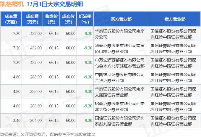 证券之星消息,12月3日凯格精机发生大宗交易,交易数据如下: