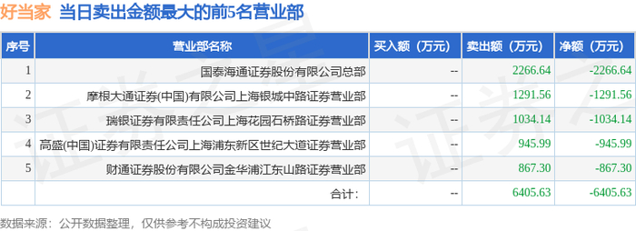证券之星消息,沪深交易所2025年12月3日公布的交易公开信息显示,好当家(600467)因有价格涨跌幅限制的日收盘价格涨幅偏离值达到7%的前五只证券登上龙虎榜。此次是近5个交易日内第1次上榜。