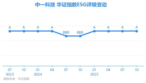 日前,华证指数公布了新一期(2025年10月31日)的ESG评级结果,中一科技(301150.SZ)获得A评级(华证指数评级为C起至AAA九档,C为最低档,AAA为其最高一级评级/AA为其第二档),上一期(2025年7月31日)ESG评级为A。本期ESG评级在531家电子设备、仪器和元件行业A股上市公司中排名第47(上一期排名第55)。