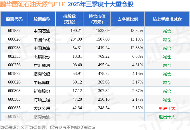根据2025基金Q3季报公募基金重仓股数据,重仓该股的公募基金共2家,其中持有数量最多的公募基金为鹏华基金的鹏华国证石油天然气ETF。鹏华国证石油天然气ETF目前规模为1.15亿元,最新净值1.1583(12月3日),较上一交易日上涨0.33%,近一年上涨10.41%。该公募基金现任基金经理为闫冬。闫冬在任的基金产品包括:鹏华中证800地产指数(LOF)A,管理时间为2019年4月30日至今,期间收益率为-39.07%;鹏华中证A股资源产业指数(LOF)A,管理时间为2019年11月20日至今,期间收益率为156.14%;鹏华中证光伏产业ETF,管理时间为2021年2月22日至今,期间收益率为-6.31%;鹏华中证细分化工产业ETF,管理时间为2021年2月23日至今,期间收益率为-25.32%。