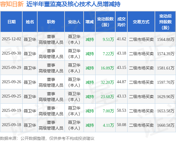 容知日新近半年内的董监高及核心技术人员增减持详情如下: