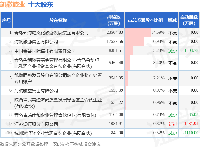 根据凯撒旅业2025年三季报公布的十大股东详情如下: