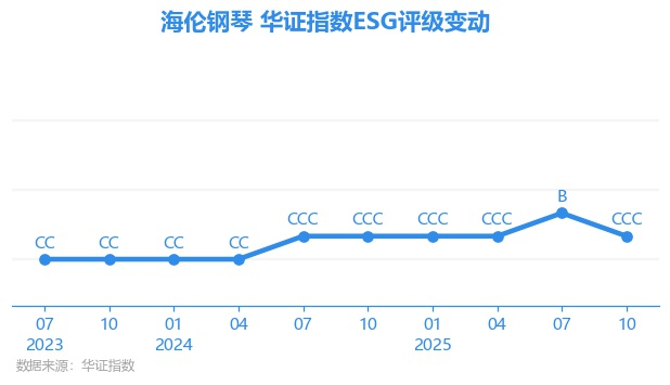 日前,华证指数公布了新一期(2025年10月31日)的ESG评级结果,海伦钢琴(300329.SZ)获得CCC评级(华证指数评级为C起至AAA九档,C为最低档,AAA为其最高一级评级/AA为其第二档),上一期(2025年7月31日)ESG评级为B。本期ESG评级在30家休闲设备与用品行业A股上市公司中排名第18(上一期排名第13)。