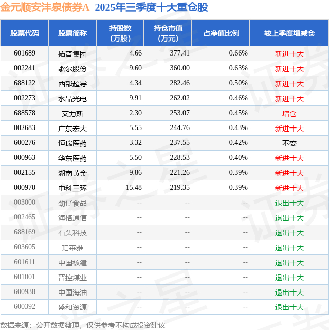 根据2025基金Q3季报公募基金重仓股数据,重仓该股的公募基金共1家,其中持有数量最多的公募基金为金元顺安基金的金元顺安沣泉债券A。金元顺安沣泉债券A目前规模为3.48亿元,最新净值1.1314(12月4日),较上一交易日下跌0.09%,近一年上涨10.83%。该公募基金现任基金经理为苏利华 张海东。苏利华在任的基金产品包括:金元顺安金元宝货币A,管理时间为2018年1月26日至今,期间收益率为17.49%;金元顺安沣泰定开债发起式,管理时间为2018年5月9日至今,期间收益率为32.87%;金元顺安泓丰87个月定开债A,管理时间为2020年12月3日至今,期间收益率为23.97%;张海东在任的基金产品包括:金元顺安乾利混合A,管理时间为2025年9月11日至今,期间收益率为-2.62%;金元顺安医疗健康混合A,管理时间为2025年10月21日至今,期间收益率为-4.6%;金元顺安乾丰稳健混合A,管理时间为2025年11月27日至今,期间收益率为-0.01%。