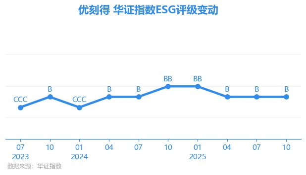 日前,华证指数公布了新一期(2025年10月31日)的ESG评级结果,优刻得(688158.SH)获得B评级(华证指数评级为C起至AAA九档,C为最低档,AAA为其最高一级评级/AA为其第二档),上一期(2025年7月31日)ESG评级为B。本期ESG评级在155家信息技术服务行业A股上市公司中排名第109(上一期排名第90)。