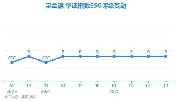 日前,华证指数公布了新一期(2025年10月31日)的ESG评级结果,宝兰德(688058.SH)获得B评级(华证指数评级为C起至AAA九档,C为最低档,AAA为其最高一级评级/AA为其第二档),上一期(2025年7月31日)ESG评级为B。本期ESG评级在165家软件行业A股上市公司中排名第91(上一期排名第83)。