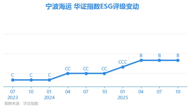 日前,华证指数公布了新一期(2025年10月31日)的ESG评级结果,宁波海运(600798.SH)获得B评级(华证指数评级为C起至AAA九档,C为最低档,AAA为其最高一级评级/AA为其第二档),上一期(2025年7月31日)ESG评级为B。本期ESG评级在16家海上运输行业A股上市公司中排名第10(上一期排名第10)。