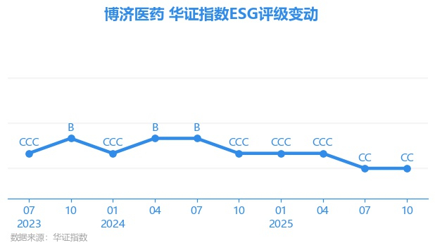 日前,华证指数公布了新一期(2025年10月31日)的ESG评级结果,博济医药(300404.SZ)获得CC评级(华证指数评级为C起至AAA九档,C为最低档,AAA为其最高一级评级/AA为其第二档),上一期(2025年7月31日)ESG评级为CC。本期ESG评级在33家生命科学工具和服务行业A股上市公司中排名第26(上一期排名第24)。