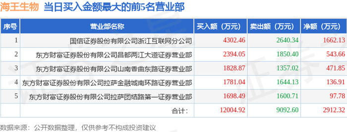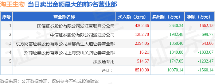 证券之星消息,沪深交易所2025年12月9日公布的交易公开信息显示,海王生物(000078)因日跌幅偏离值达到7%的前5只证券登上龙虎榜。此次是近5个交易日内第3次上榜。