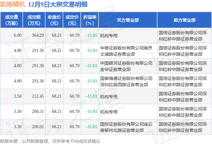 证券之星消息,12月9日凯格精机发生大宗交易,交易数据如下: