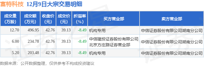 证券之星消息,12月9日富特科技发生大宗交易,交易数据如下: