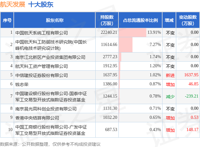 根据航天发展2025年三季报公布的十大股东详情如下: