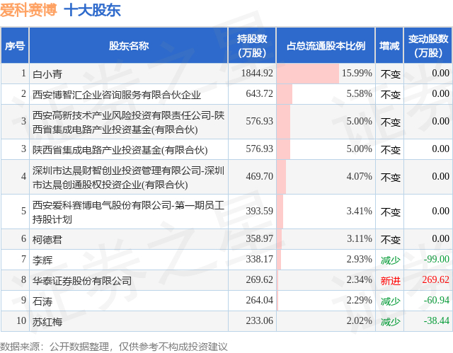 根据爱科赛博2025年三季报公布的十大股东详情如下: