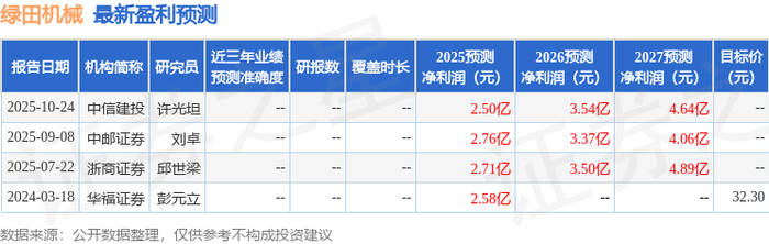 绿田机械2025年三季报显示,前三季度公司主营收入18.77亿元,同比上升19.57%;归母净利润2.0亿元,同比上升44.35%;扣非净利润1.97亿元,同比上升36.73%;其中2025年第三季度,公司单季度主营收入5.69亿元,同比上升1.02%;单季度归母净利润5986.83万元,同比上升12.28%;单季度扣非净利润5736.57万元,同比上升9.05%;负债率28.13%,投资收益38.24万元,财务费用-886.61万元,毛利率21.0%。