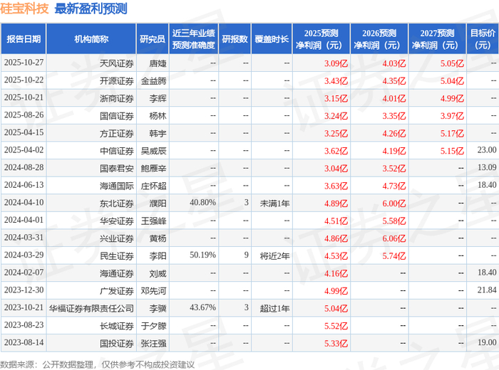 证券之星消息,2025年12月10日硅宝科技(300019)发布公告称博时基金、国金证券、中信建投证券于2025年12月10日调研我司。