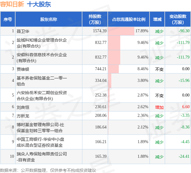 根据容知日新2025年三季报公布的十大股东详情如下: