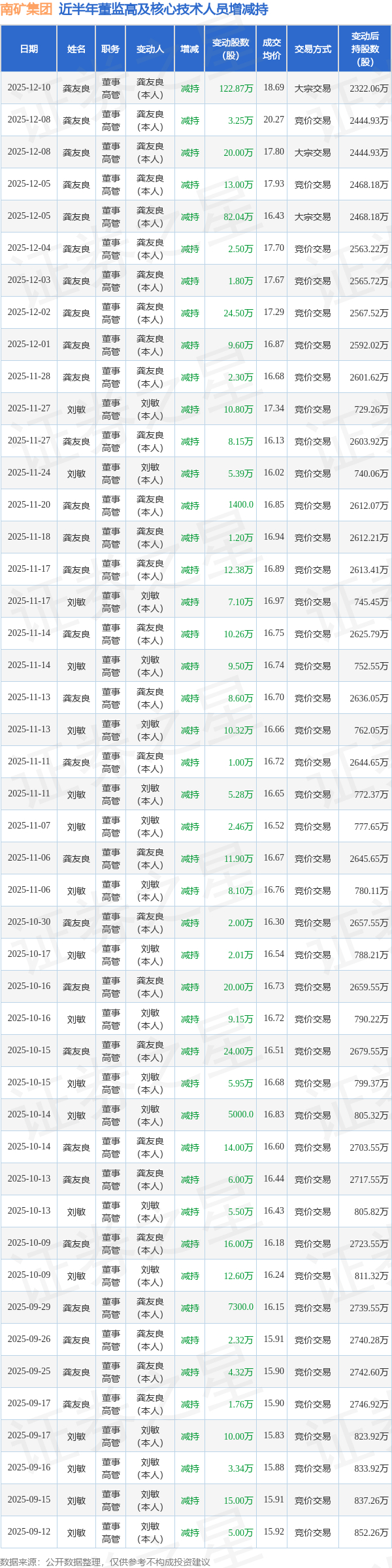 南矿集团近半年内的董监高及核心技术人员增减持详情如下: