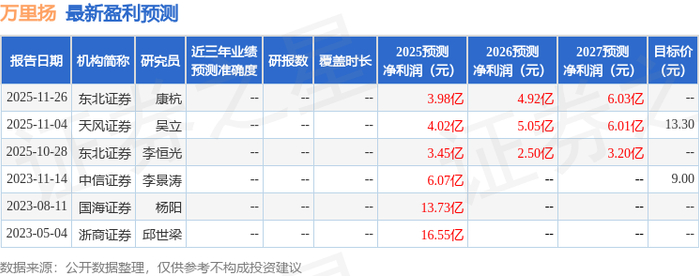 以下是详细的盈利预测信息: