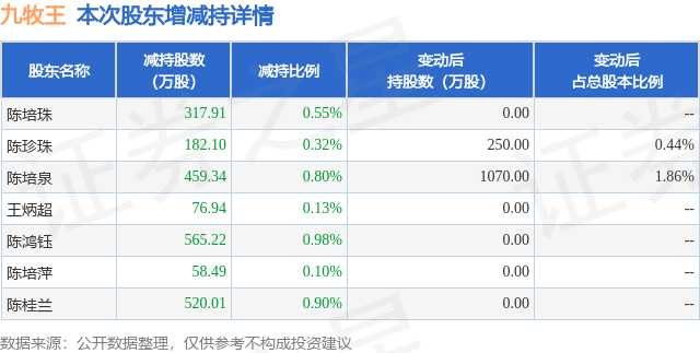 股东增减持详情见下表: